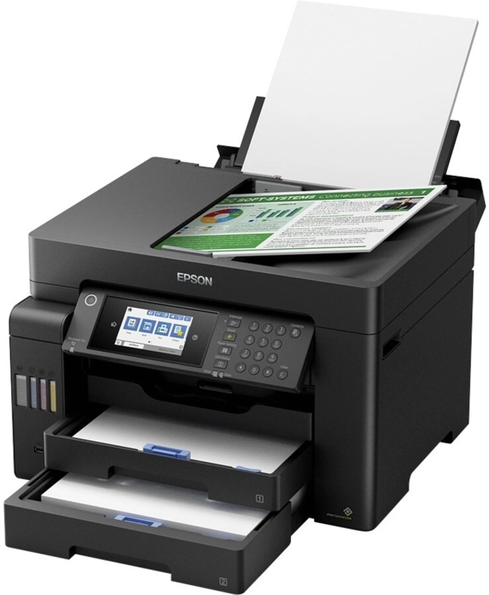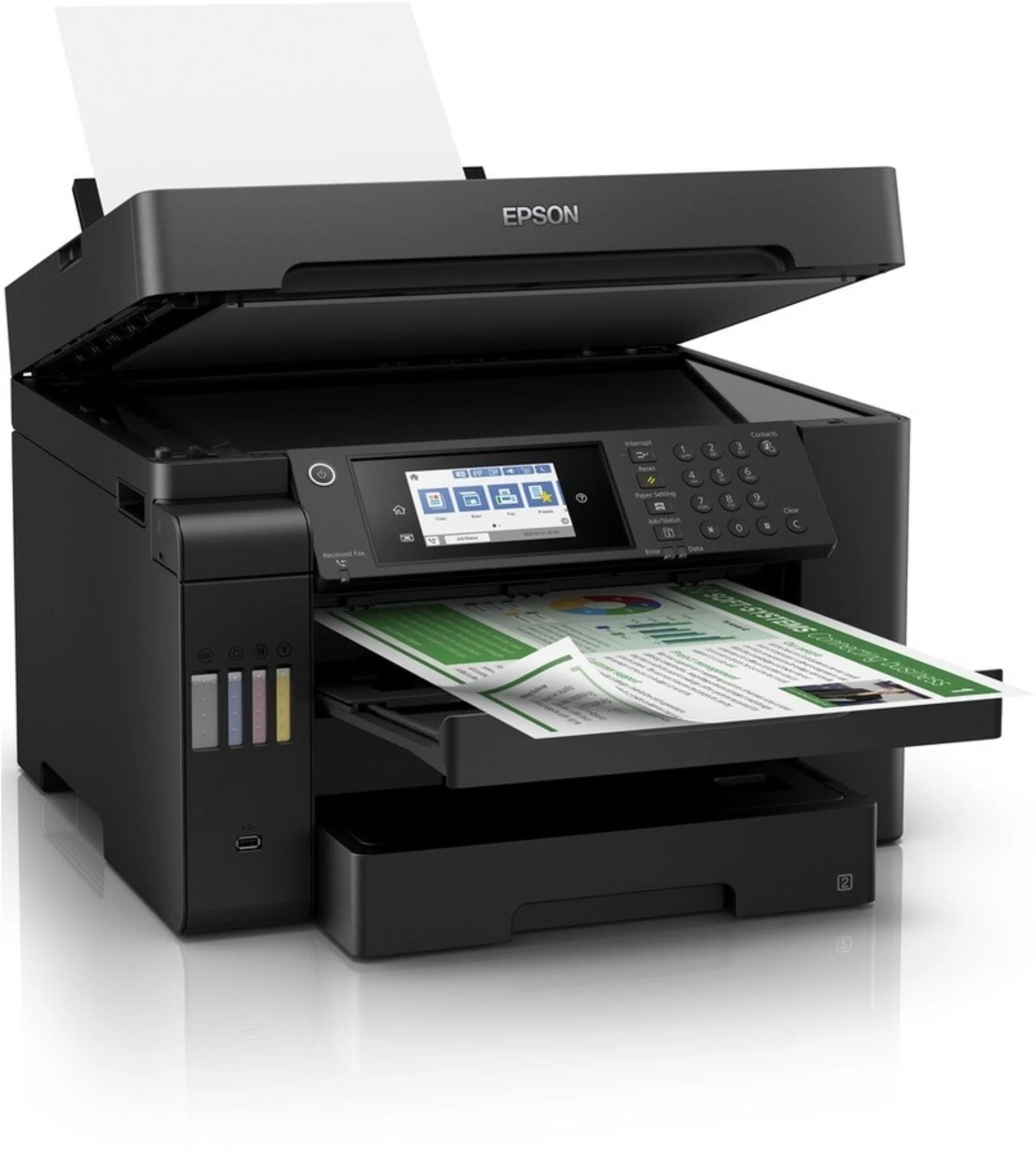 Epson EcoTank L15150 – Impresora multifunción – color – chorro de tinta – rellenable – 297 x 432 mm (original) – A3 (material) – hasta 16 ppm (copiando) – hasta 25 ppm (impresión) – 550 hojas – 33.6 Kbps – Gigabit LAN, host USB, USB 3.0, Wi-Fi(ac)